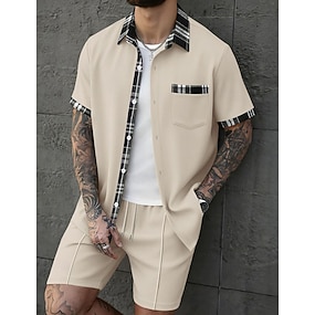 Herr 2 delar Skjorta set Sommar set Och Uppsättning Kontrastfärg Ledigt Dagligen Semester Tröjkrage Kortärmad Kort byxa Sommar Vår Mode Ledigt Bekväm Kläder