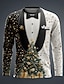 Herr Kavaj Kappa Jul Ledigt Ledigt vardag Höst vinter 100% Polyester Julgran 3D-utskrift Knappar Håller värmen Bekväm Enkelknäppt Blazer Svart Rubinrött Havsblå Blå