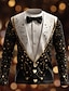 Herr Kavaj Kappa Jul Ledigt Ledigt vardag Höst vinter 100% Polyester Snöflinga 3D-utskrift Knappar Håller värmen Bekväm Enkelknäppt Blazer Rubinrött Marinblå Blå Purpur
