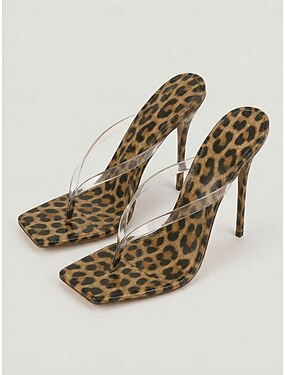 leopardmönstrade stilettsandaler med t-rem, sexiga högklackade festskor för nattlivet, klänningsklackar med öppen tå för klubb, cocktail &kvällsevenemang
