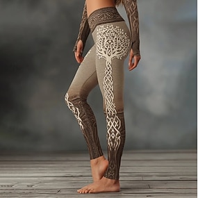 Kvinnors Viking Boho Leggings Vintage Etnisk Stil Hel Längd Hög Midja Grafisk Abstrakt 3D Utskrift Snabbtorkande Andningsförmåga Mjuk Stretchig Formell Utomhus Semester Ljusbrun Svart Rosa Svart Vår