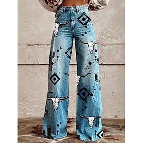 Retro / vintage 70-talet Häftig Byxa Byxor med vida ben Hippie Disk Hög midja Psykedelisk Fejkjeansstil Maskeradkläder Dam Karnival Ledigt / vardag musikfestival Retro-temafest Vuxna Byxor