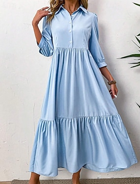 Dam Midiklänning Skjortklänning Mode Modern Utomhus Semester Helgdag Normal Slät 3/4 ärm Tröjkrage Svart Grön Ljusblå Sommar