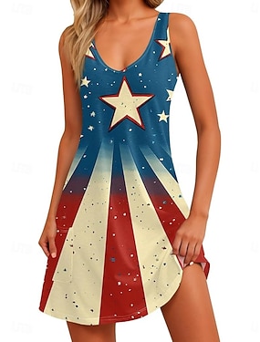 Damernas Miniklänning Petite Klänning Petite Klänning Sommarklänning A-linje Klänning Tank Klänning Avslappnad Semester Daglig Strand Lätt Passform Hjärtan Ros Flagga Ärmlös Crew Neck Vit Röd
