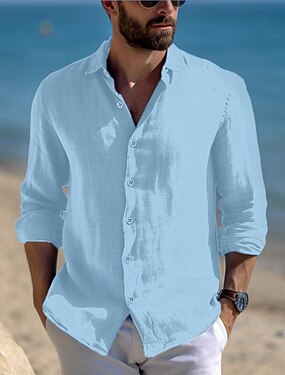 Herr Skjorta Linneskjorta Sommarskjorta Standkläder Knapp upp skjorta Slät Semester Ledigt Svart Vit Rodnande Rosa Kungsblå Långärmad Krage Sommar Vår Kläder Slät