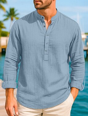 Herr Skjorta Linneskjorta Guayabera skjorta Sommarskjorta Casual skjorta Knapp upp skjorta Slät Hem Dagligen Vit Rodnande Rosa Kaki Ljusblå Långärmad Bandkrage Sommar Vår & Höst Kläder