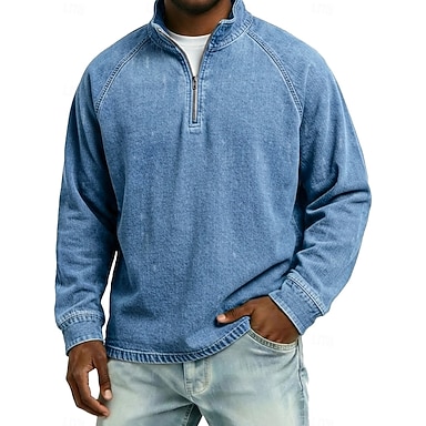 Herr Jeansskjorta Tvätta skjorta i 100 % bomull T-tröja Långärmad Hög krage Höst vinter Vår Höst Slät Vintage Streetwear Ledigt Dragkedja Färgade plagg Grundläggande Ledigt Hem Gata Ljusblå Svart Rosa