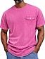 Herr T-shirt Tvätta skjorta i 100 % bomull T-tröja Kortärmad Rund hals Sommar Vår Höst Slät Retro / vintage Ledigt Ficka Vintagestil Bedrövad Ledigt Ljusblå Svart Rosa Topp t-shirt för män