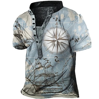 Herr Grafisk T-shirt Henleytröja T-shirts Kortärmad 3D-tryck Designer Grundläggande Ledigt Utomhus Dagligen Sport Sommar Gul Blå / Vit Brun Kaffe Blå + Blå Hög krage Henley T-shirt