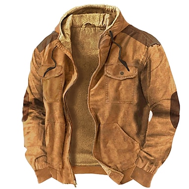 Herr Huvtröja med dragkedja Fuzzy sherpa Fleece-jacka Huvtröja i fleece Blå Purpur Brun Kaki Huva Grafisk Dragkedja Ficka Snörning Sport & Utomhus Dagligen Helgen Polyester Vintage Häftig Ledigt Höst