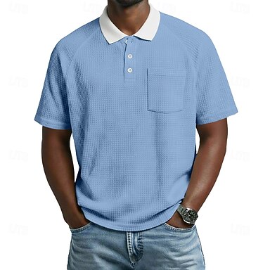Herr Våffelpikétröjor Strukturerad Ledigt Klassisk Kortärmad Mode Bekväm Färgblock Ficka Raglan Ärmar Sommar Vår Vår & sommar Normal Svart Vit Ljusgrön Marinblå Purpur Kaki Våffelpikétröjor
