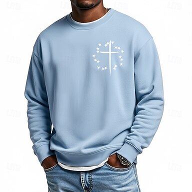Herr Kors Jesus Tro Tröja Mode Dagligen Ledigt Långärmad Rund hals Hem Utomhussport Streetwear Ljusblå Ljuslila Grön Kaki Ljusgrå Crewneck 3D Alla årstider Designer S M L XL XXL XXXL