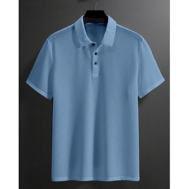 Herr Golftröja Våffelstickad pikétröja Ledigt Företag Klassisk Kortärmad Mode Modern Ensfärgat Knappar Sommar Vår Vår & sommar Normal Svart Vit Gul Vin Ljusblå Grå Golftröja