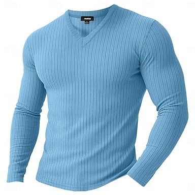 Herr T-shirt Muskelskjorta Ribbstickad t-shirt T-tröja Långärmad V-hals Vår Höst Vinter Slät Pit Strip Mode Designer Grundläggande Stickat Semester Gata Ledigt Ljusblå Svart Vit Topp t-shirt för män