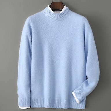 Herrtröja i ren ull, kashmir, polotröja, klassisk stickad tröja, mjuk, varm, andningsbar