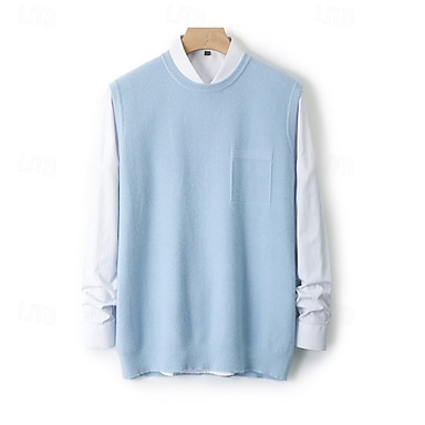 herr premium ren ull kashmir rund hals tröja väst klassisk stickad pullover mjuk varm andningsbar