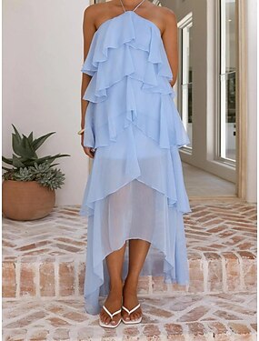 Dam Midiklänning Vardagsklänning Chiffongklänningar Nivåklänning Elegant Mode Modern Utomhus Semester Utekväll Normal Slät Ärmlös Halterneck Ljusgul Ljusrosa Ljusgrön Ljuslila Sommar Vår