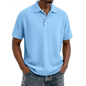 Herr Polo Strukturerad Ledigt Företag Nedvikt Ribbstickad polokrage Kortärmad Mode Grundläggande Ensfärgat Knappar Sommar Vår & Höst Normal Sjöblå Svart Vit Marinblå Mörkgrå Ljusblå Polo