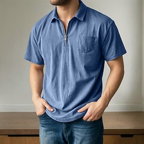 Herr Pikétröja i bomull Golftröja Dagliga kläder Datum Fjärdedels blixtlås Kortärmad Mode Grundläggande Slät Dragkedja Ficka Sommar Vår Vår & sommar Normal Militärgrön Svart Rodnande Rosa Marinbl