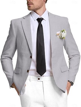 Herr Linne blazer Sportrock Naggkrage Lättvikt Klassisk Solid färg Blazer Svart Marinblå Himmelsblå Standardpassform Enkelknäppt tvåknappar
