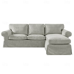 ektorp 3-sits soffa med schäslongöverdrag, enfärgat quiltat manchesteröverdrag, slitstarkt halkfritt skydd för vardagsrum