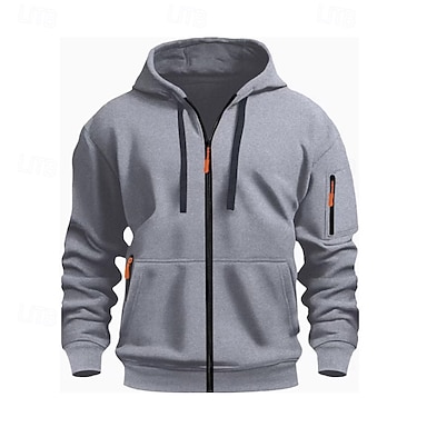 Herr Huvtröja Huvtröja med dragkedja Svart Marinblå Kaki Ljusgrå Mörkgrå Huva Slät Ficka Dagligen Sport & Utomhus Helgdag Polyester Streetwear Grundläggande Ledigt Vår Höst Kläder Pull Tröjor