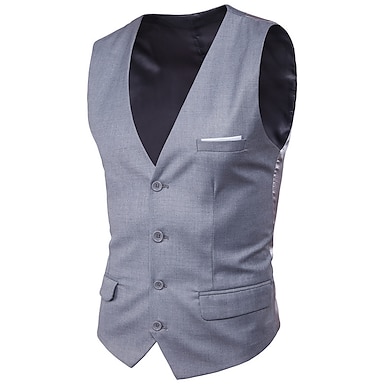 Herr Väst Bröllop Arbete Gata Företag Streetwear Affär Sommar Höst Ficka Bomull Andningsfunktion Ensfärgat Enkelknäppt V-hals Normal Sjöblå Svart Vin Rubinrött Väst