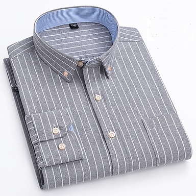 Herr Skjorta Randig tröja Button Down skjorta Icke-järnskjorta Oxford skjorta Pläd / Randig / Chevron Bröllop Kontor & Karriär Ljusblå Mörkröd Rubinrött Mörk marin Långärmad Tröjkrage Alla årstider