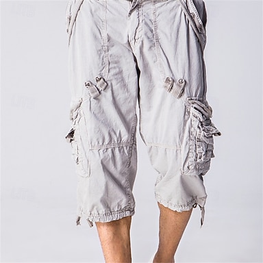 Herr Capri Cargo Shorts Cargo-shorts Capribyxor Shorts Sommarshorts Flera fickor Flikficka Slät Komfort Bärbar Knelängd Utomhus Sport Dagligen Mode Ledigt Armégrön Rubinrött