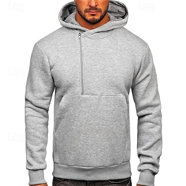 Herr Huvtröja Huvtröja med dragkedja i Quarter Huvtröja i fleece Blå Svart Purpur Ljusgrå Mörkgrå Huva Slät Dragkedja Ficka Sport & Utomhus Dagligen Helgdag Polyester Streetwear Grundläggande Ledigt