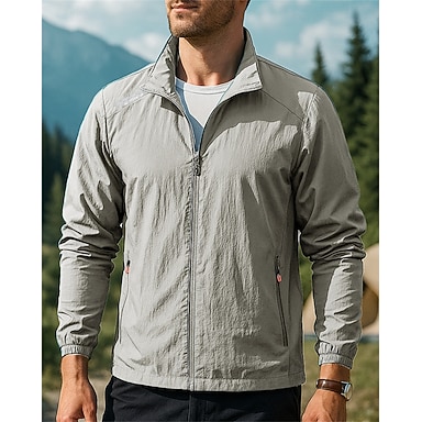 Herr Utomhusjacka Vandringsjacka Sportjacka Utomhus Vattentät Vindtät Snabb tork Lättvikt Vandringskläder Vandringskläder Vår Höst Jacka Tennis Golf Löpning Ensfärgat Mörkgrå Blå Ljusgrå