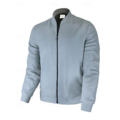 Herr Cardigan Tröja Beskuren tröja Blixtlåströja Stickad tröja Ribbad Sticka Normal Lappverk Ficka Färgblock Hög krage Mode Klassisk Dagliga kläder Datum Kläder Höst vinter Rubinrött Ljusgrå M L XL