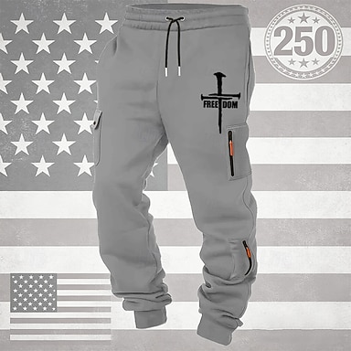 Herr Cargo träningsbyxor Joggingbyxor Joggare Långbyxor Snörning Ficka Elastisk midja Kors Komfort Andningsfunktion Dagligen Utomhus Amerikas 250-årsjubileum Semester Mode Svart Vit Microelastisk