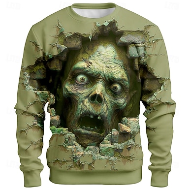 Herr Zombier 3D Tröja Punk party Gotiskt Långärmad Rund hals Semester Ljusgrön Grön Grå Crewneck 3D Alla årstider Designer S M L XL XXL XXXL