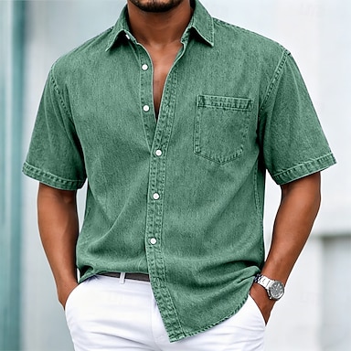 Herr Skjorta Casual skjorta Bleknad skjorta Färgade plagg Tvätta skjorta i 100 % bomull Svart Ljusgrön Vin Mörkgrön Purpur Kortärmad Slät Tröjkrage Ledigt Dagligen Framficka Kläder Bomull Elegant