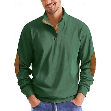 Herr Tröja Svart Ljusgrön Armégrön Marinblå Blå Henley Färgblock Lappverk Sport & Utomhus Dagligen Helgdag Polyester Streetwear Grundläggande Ledigt Vår Höst Kläder Pull Tröjor