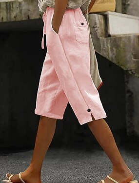 Dam Shorts i bomullslinne Capribyxor Byxor Sommarshorts Ledigt Vadlängd Naturlig Slät Ficka Elastisk dragsko-design Bekväm Utomhus Utomhus Utekväll Ljusrosa Orangeröd Vit Rosa Sommar Normal