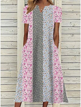 Dam Maxiklänning Vardagsklänning A linjeklänning Stylish Ledigt Semester Dagligen Normal Blommig Kortärmad V-hals Ljusrosa Ljuslila Purpur Beige Vår Höst