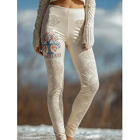 Dam Damasker Vardagsklädsel Mysiga leggings Semester Vintage Etnisk Stil Fullängd Hög midja Grafisk Träd Tryck Bekväm Elastisk Ledigt Dagligen Semester Beige Vår Höst Smal passform
