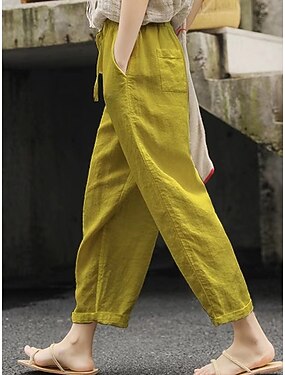 Dam Byxor av linne i bomull Byxor Sommarbyxor Säckiga byxor Fast Klassisk Ankellång Medium Midja Ficka Opressade byxor Elastisk dragsko-design Komfort Mateial som andas Mjuk Microelastisk Ledigt