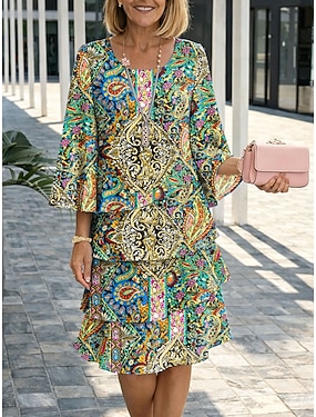 Dam Knälång klänning Skiftklänning Ledigt Normal Blommig Grafisk Paisley 3/4 ärm Rund hals Blå Rodnande Rosa Grön Sommar Vår