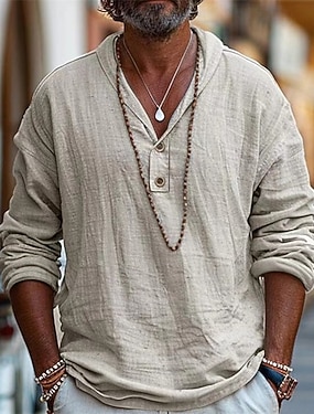 Herr Linneskjorta Popover skjorta Casual skjorta Strandskjorta Bandkrageskjorta Slät Strand Semester Blå Svart Vit Rodnande Rosa Långärmad Henley Vår & sommar Kläder