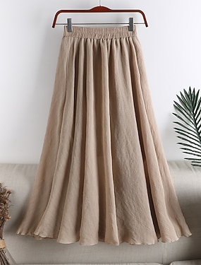 Dam Plusstorlekar Mode Grundläggande Ledigt Midi Kjolar Solid färg Rynkad Plisserad Dagligen Utekväll Blå Svart Vit Rodnande Rosa Vår & sommar Bomullsblandning Linne- / bomullsblandning