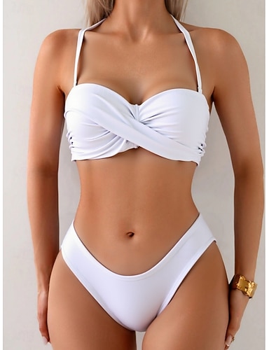 tvådelad baddräkt för kvinnor bikini nedredel stringtrosa baddräkt hög midja semester strandkläder enfärgad halterneck ärmlös baddräkt