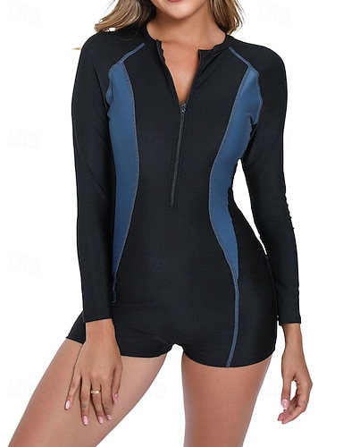 Dam Rash-guards Baddräkt Baddräkter Färgblockerande Dragkedja Ultralätt (UL) UV-skydd Elastisk Långärmad Badkläder Surfing Snorkelfenor Vår