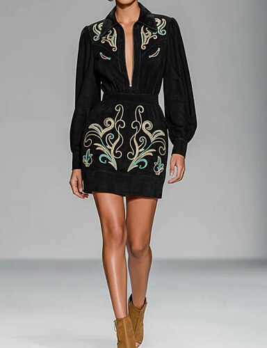 Dam Mini klänning Svart klänning Festklänning Cocktail klänning Modern Kvällsfest Fest Cocktailfest Normal Blommig Långärmad Tröjkrage Svart Vår Höst