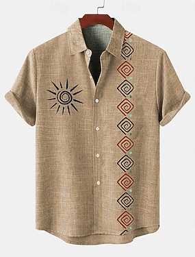 Herr Skjorta Linneskjorta Popover skjorta Sommarskjorta retro skjortor Etnisk skjorta Geometrisk Semester Gata Kaki Långärmad V-hals Sommar Vår Kläder