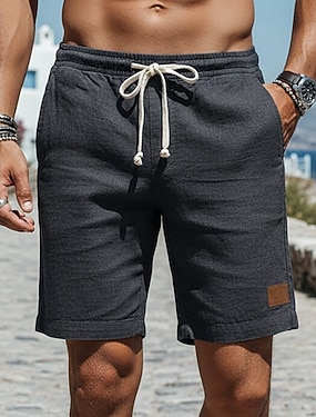 Herr Shorts Linne Shorts Sommarshorts Beach Shorts Snörning Elastisk midja Enfärgat Komfort Andningsfunktion Knelängd Ledigt Dagligen Utomhus Semester Mode Blå Svart Oelastisk