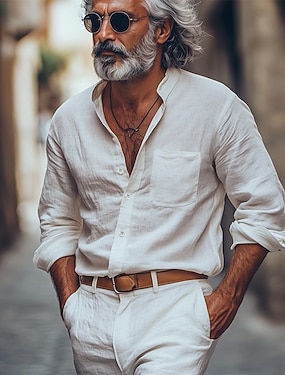 Herr Skjorta Linneskjorta Vit bomullsskjorta Sommarskjorta Strandskjorta Linneskjorta i bomull Slät Semester Hawaiisk Svart Vit Rodnande Rosa Blå Långärmad Nedvikt Vår & Höst Kläder Button-Down