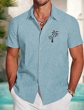Herr Kokosnötsträd Tropiska växter Linneskjorta Strandskjorta Hawaii skjorta Kortärmad Hawaiisk Semester Helgdag Standkläder Sommar Vår Krage krage skjortor Blå Grön